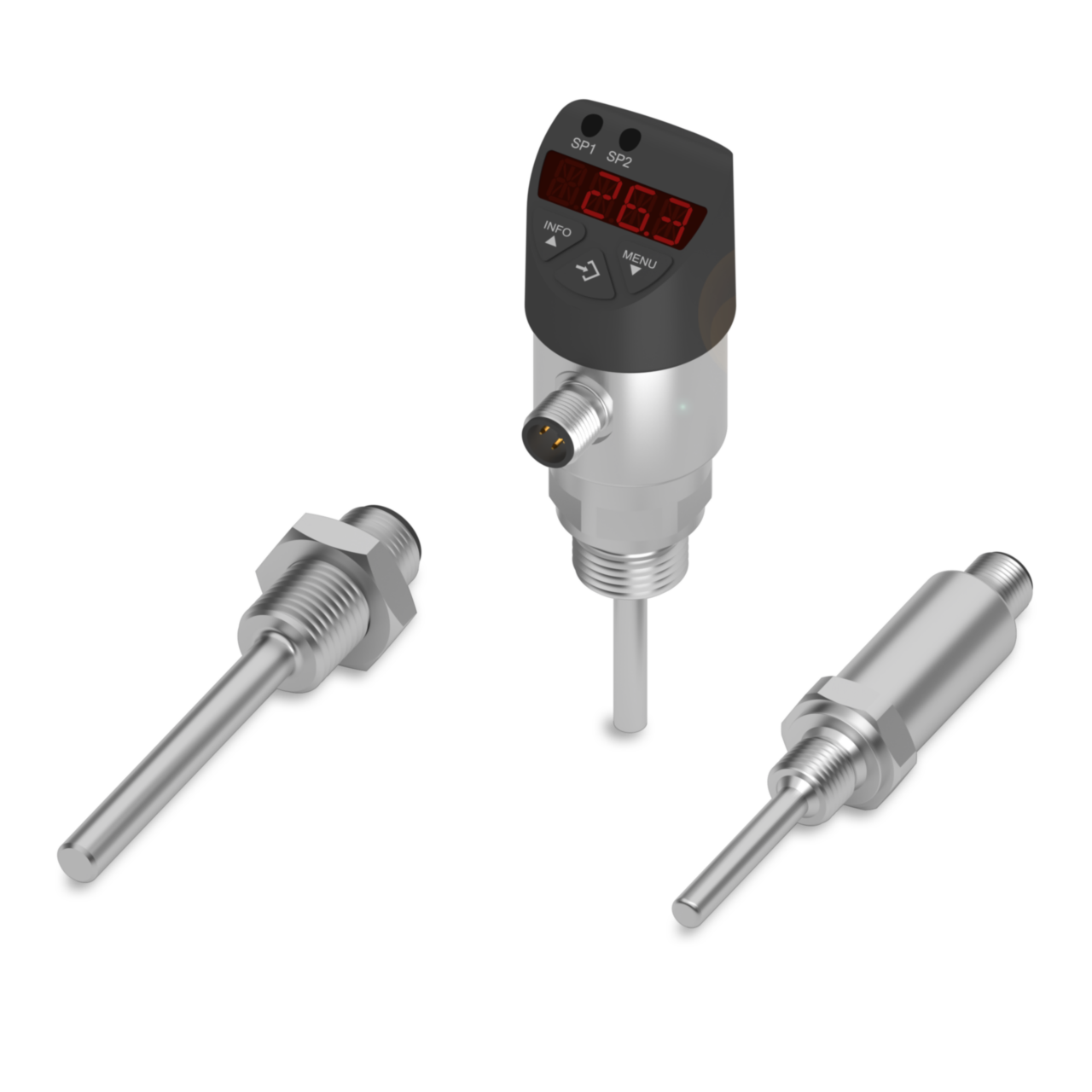 Geniş bir uygulama yelpazesindeki farklı gereksinimler, ekranlı ve ekransız varyantlarla karşılanabilir. IP67 koruma sınıfına sahip sağlam gövde sayesinde sıcaklık sensörleri zorlu endüstriyel ortamlar için de uygundur.